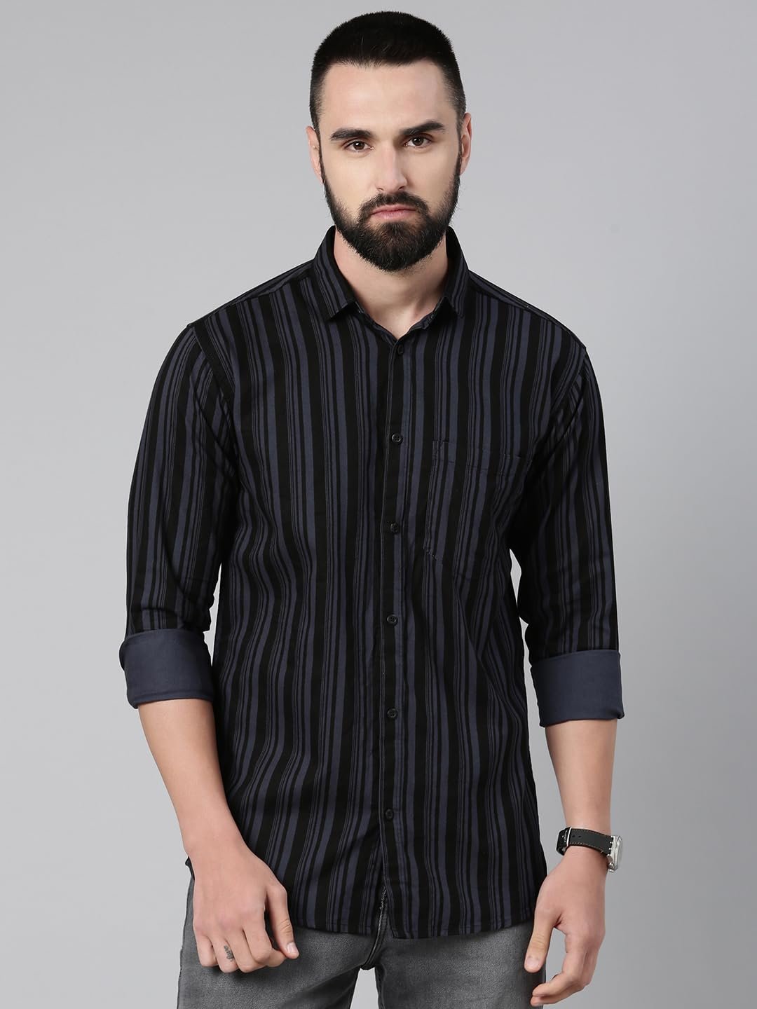 Men’s Standard Slim Fit Striped Pure Cotton Casual Shirt