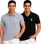 Pack of 2 Men Solid Polo Neck Polycotton Multicolor T-Shirt